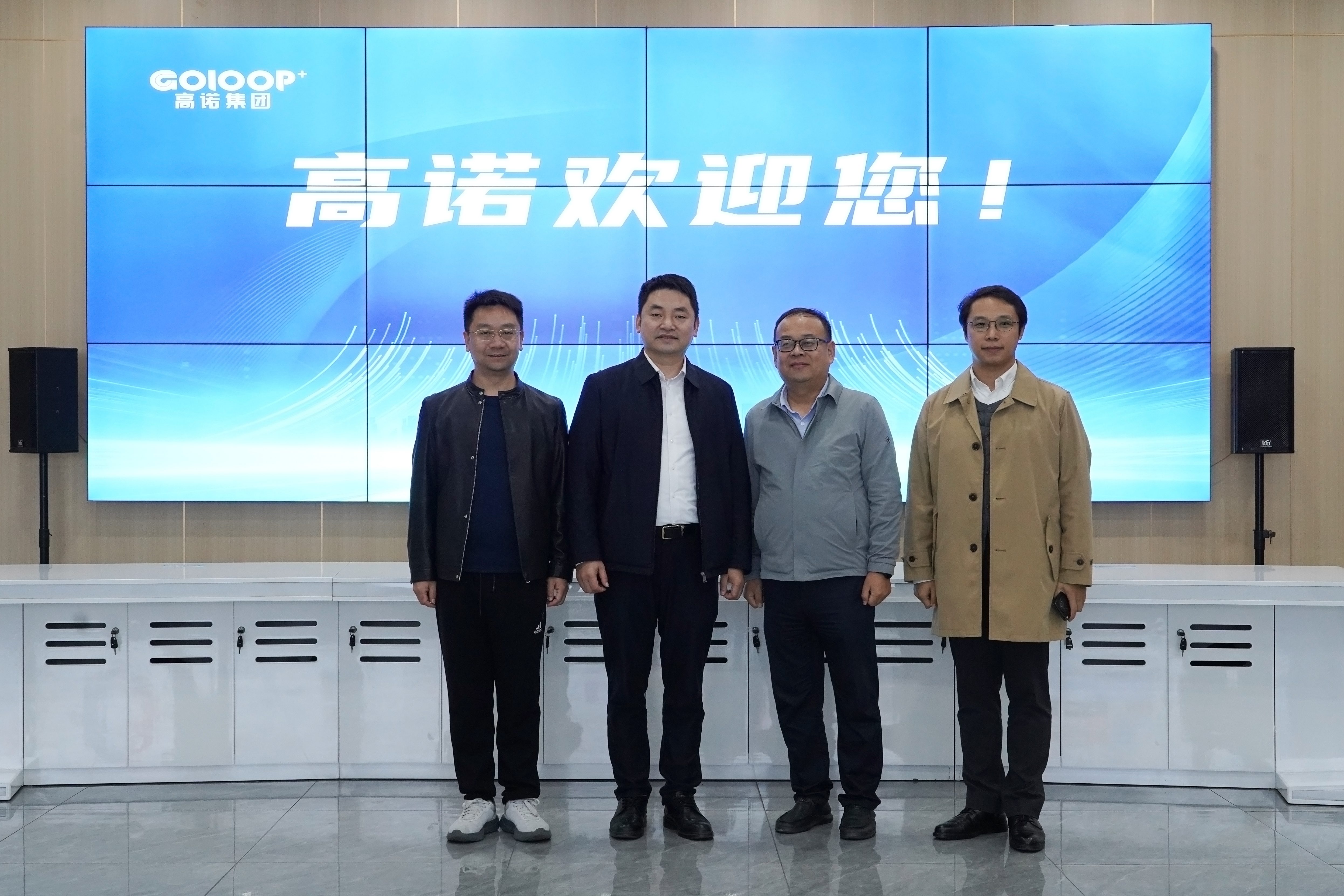 ▲ 高诺董事长毛铁(左二)与河南省洛阳市政府驻深圳招商联络处主任程欢(左一)一行合影