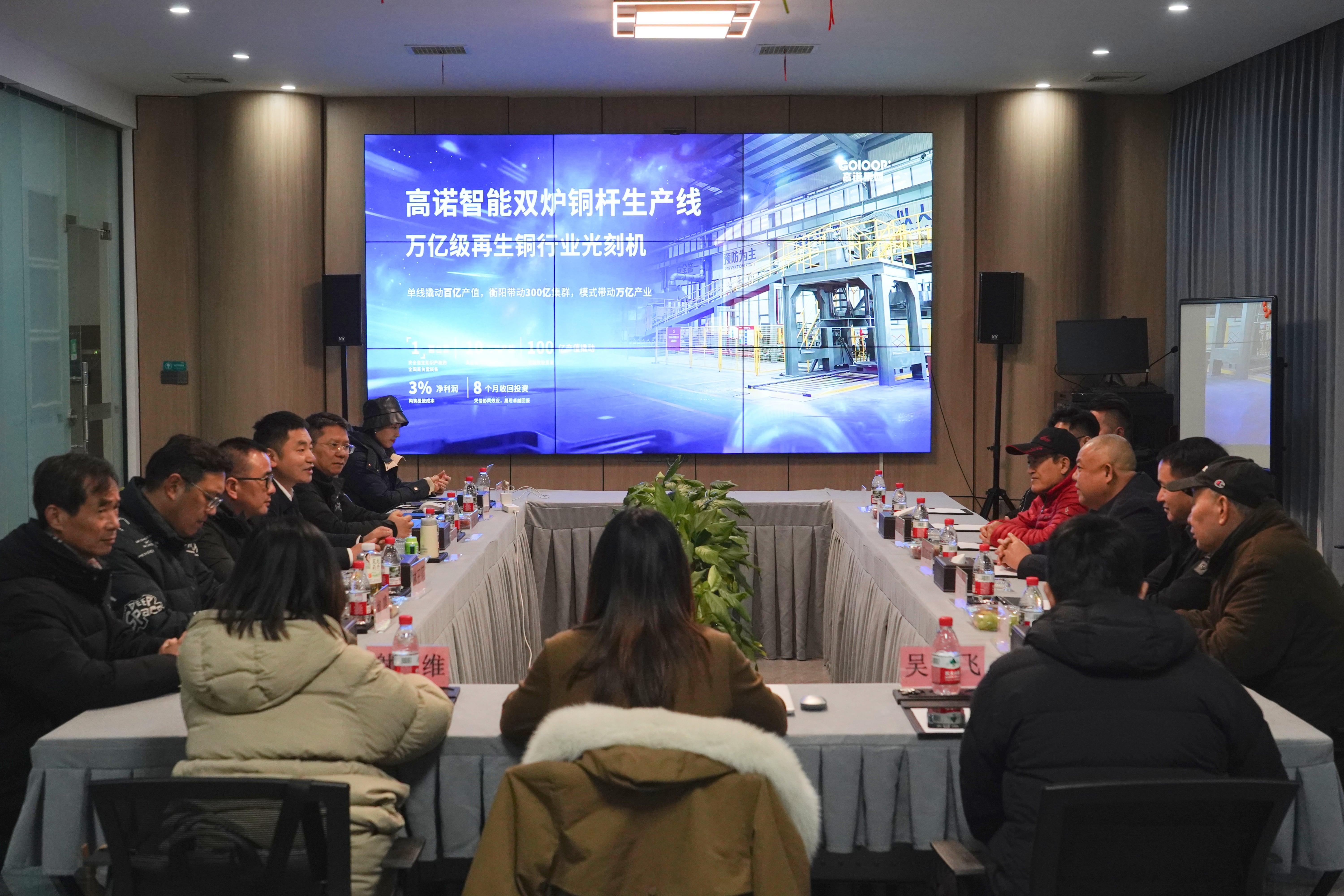 此次考察团阵容强大,汇聚了产业资本、工程技术与供应链等多领域的核心力量,这不仅是一次简单的企业互访,更是资本、技术、原材料与市场资源的深度汇聚与精准对接。考察期间,双方围绕桂民投拟建的“日产500吨再生铜自动化生产线”项目展开了座谈交流。桂民投计划利用现有装配式建筑厂房,通过EPC交钥匙模式引入高诺智能产线。座谈会上,针对未来10年废铜回收市场的广阔前景,高诺集团结合自身“国际先进”的设备优势,从投资回报、能耗控制、环保审批及风险规避等多维度提供了专业方案,为项目的实质性落地提供了科学依据与清晰路径。