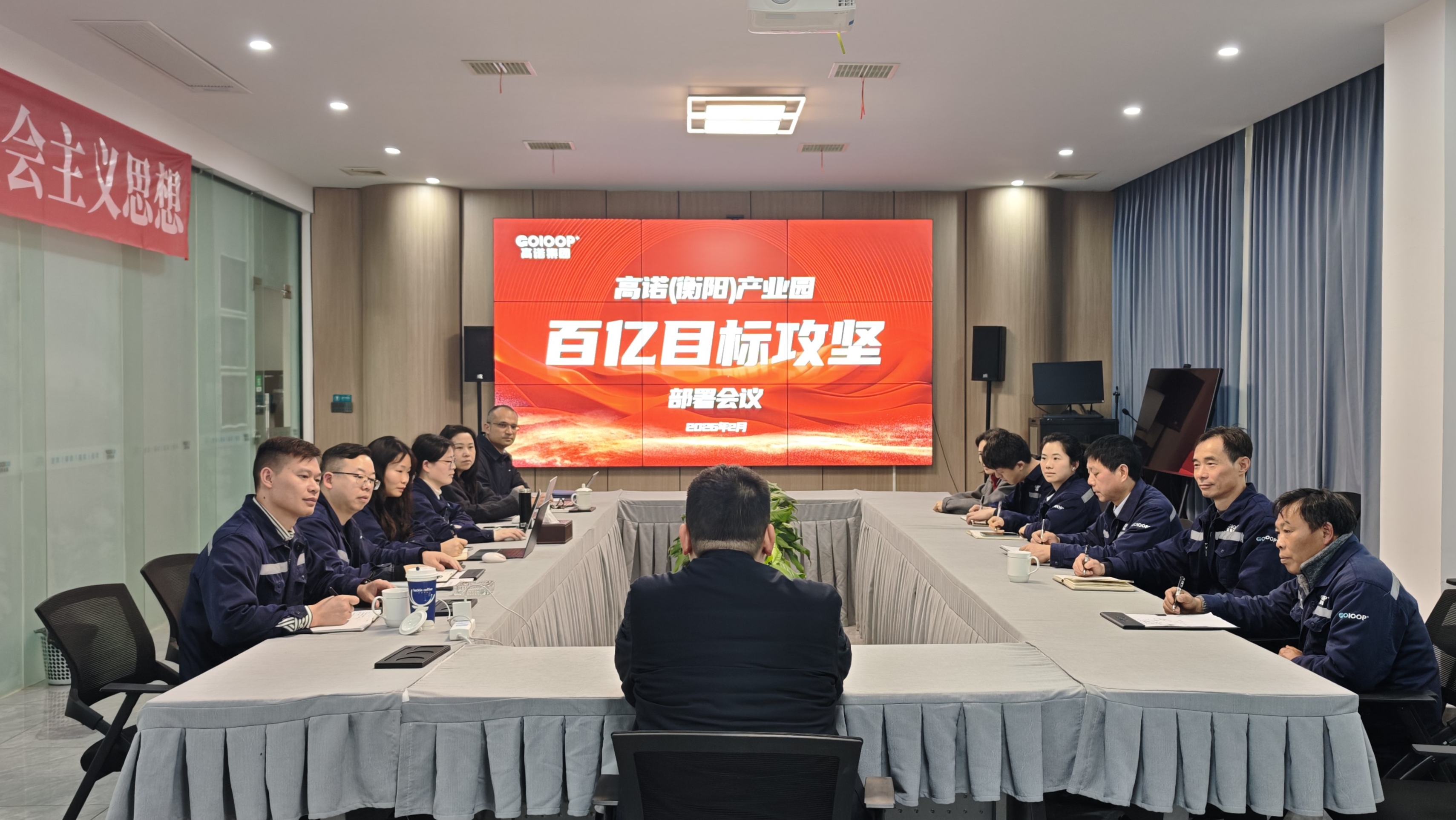 26日下午,为深入贯彻落实常宁市“企业服务年”工作座谈会核心精神,抢抓产业发展黄金窗口期,全面推进 2026 年百亿产值目标落地见效,高诺(衡阳)产业园第一时间组织召开百亿目标攻坚暨“企业服务年”会议精神落地部署会。会议聚焦 2026 年百亿目标,对生产、销售、招商、供应链等核心工作进行全面拆解与部署,明确了各板块的业绩指标、责任主体与时间节点。公司高层领导、各业务板块负责人等核心部门骨干参会,会议紧扣发展目标,直面核心瓶颈,细化攻坚举措,全面吹响百亿目标攻坚冲锋号。